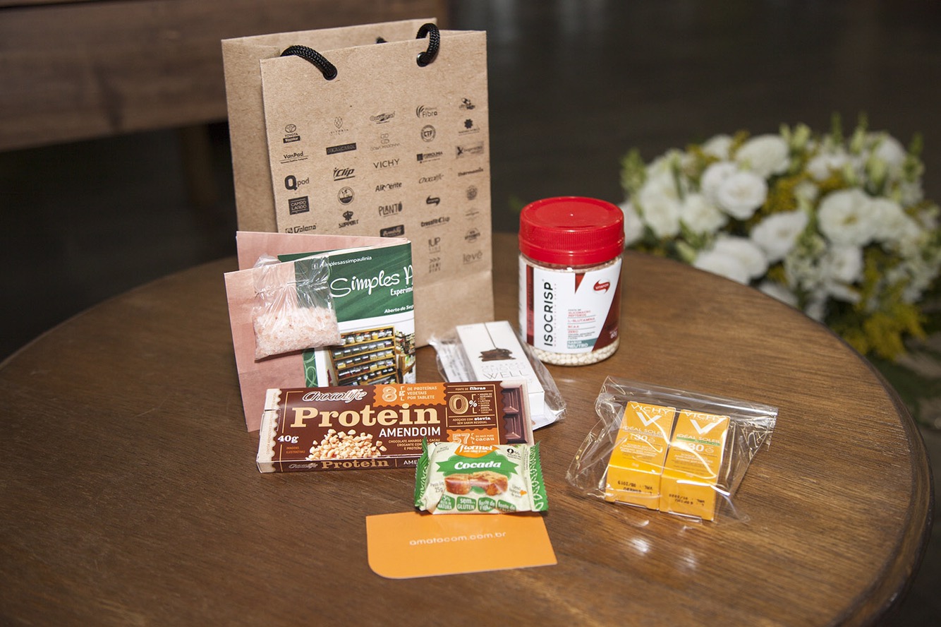 Tivemos frutas da empresa No Caixote, barras de castanhas Vitones, chás da Moncloa Iguatemi Campinas, sucos Campo Largo e Smoothies da Flex Smoothies Paulínia.