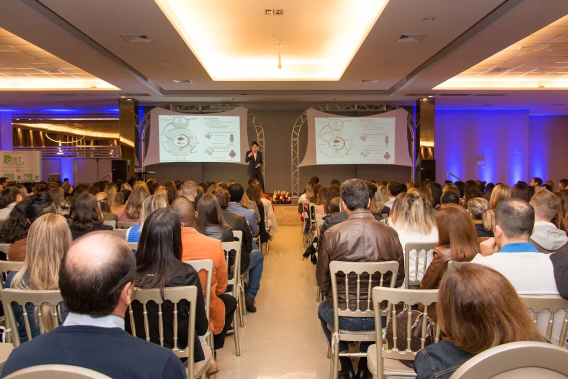 Com a casa cheia no salão de eventos Zarzuela recebemos todos os inscritos por volta das 19h que foram recepcionados com um lounge interativo repleto de brindes, novidades, mimos e happy hour funcional.